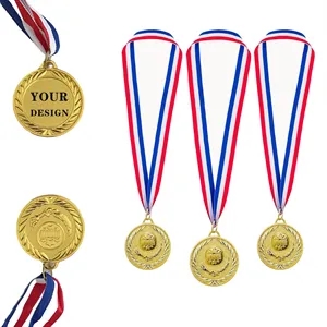 Product name : 2" Custom Gold Award Medals W/ Stripes Neckband