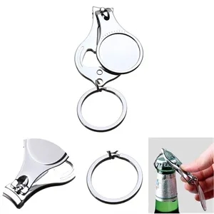 This multi function nail clipper is made of carbon steel. It has a nail file, bottle opener, nail clipper along with a split ring. 2 1/3" L x 1 1/6" W