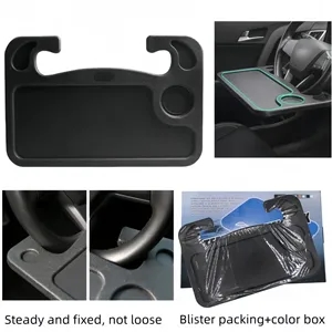 The convenient steering wheel table features a stylish 2-in-1 design that is both convenient and practical. One side of the dinner plate features a cup holder with a flat surface for cups of water and food. The other side has a flat surface with a pen slot for a laptop.The multifunctional steering table tray is perfect for long trips, laptops, and business travel. This is one of the must-have interior accessories for your car.The portable car tray is made of high quality ABS material, designed to fit the steering wheel of most vehicles, it's a sturdy and durable car accessory.Simply hang the car tray from the bottom onto the steering wheel for an instant ergonomic desk. Easy to clean, easy to store, can be put into the back pocket when not in use.