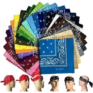 The bandanas can be worn as a headband, neck tie, wristband, head wrap, handkerchief, face mask, fashion accessory, handbag strap decor, napkin or scarf.