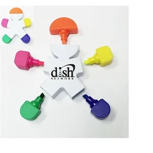 This figure-shaped highlighter is a fun and functional desk accessory that can stand upright for easy access. Perfect for school, office, corporate gifts, travel, camping, hiking, and self-promotion. With a guaranteed 3-month shelf life, it's designed for long-lasting use. Complies with Prop 65 for safety. Dimensions: 3" L x 3 3/4" W.
