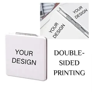This is a leather mini folding mirror, with compact dimensions of 2.83 inches by 2.83 inches by 0.39 inches, making it ideal for carrying in your pocket or bag. Both sides of the mirror can be fully customized with your desired patterns and logos.