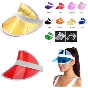 Introducing our PVC Sun Protective Visor Hat Caps, the ultimate blend of fashion and functionality for your outdoor escapades. Crafted from premium PVC material, these visor hats are designed to accompany you on all your adventures. Lightweight and portable, they offer comfort and convenience wherever you go. The elastic band closure ensures a snug and adjustable fit for all head sizes. With UV-resistant and waterproof properties, these hats provide reliable protection against the elements, shielding you from harmful sun rays and unexpected rain showers. The tinted lens adds practicality, reducing glare and enhancing visibility in bright conditions. Whether you're engaged in sports, travel, golf, running, or simply enjoying the great outdoors, these visor hats offer unparalleled style and