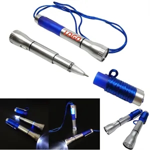 This 3-in-1 pen combines a pen, flashlight, and safety buckle for maximum convenience and functionality. Crafted from durable plastic, it's ideal for daily use and outdoor adventures. The bright LED flashlight ensures reliable illumination in low-light conditions, making it perfect for camping, hiking, or emergency situations. Customizable with your logo or design, it's an excellent promotional gift for clients or employees. Dimensions: 5" L x 1" W.