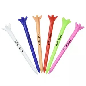 These premium plastic golf tees are designed for durability and strength, featuring a unique claw shape top that holds the golf ball securely in place. The plain background makes it easy to display your custom imprint, offering high visibility for your logo. Ideal for athletic associations, universities, and golf events. Ships via sea for cost-effective delivery. Complies with Prop 65 regulations. Dimensions: 2.76" L x 0.15" W.