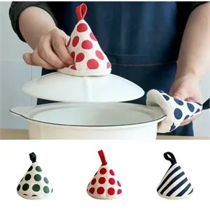 This is a heat-insulating glove with a simple design. It is small and easy to carry. It is scalding-proof. When cooking, the casserole is very hot, which can solve the trouble of being scalded. It can be used as a heat-insulating glove. It is suitable for microwave ovens, ovens, kitchens, pot covers, casseroles and other kitchen supplies. The triple fabric protection effectively insulates. The outer layer is pure cotton polka dot printed fabric, and the inner layer is white high-density thick cotton cloth. The inner layer is filled with thickened heat-insulating cotton, which effectively insulates and feels softer to the touch.